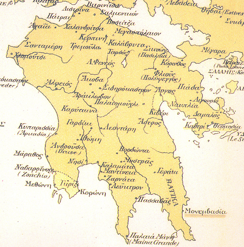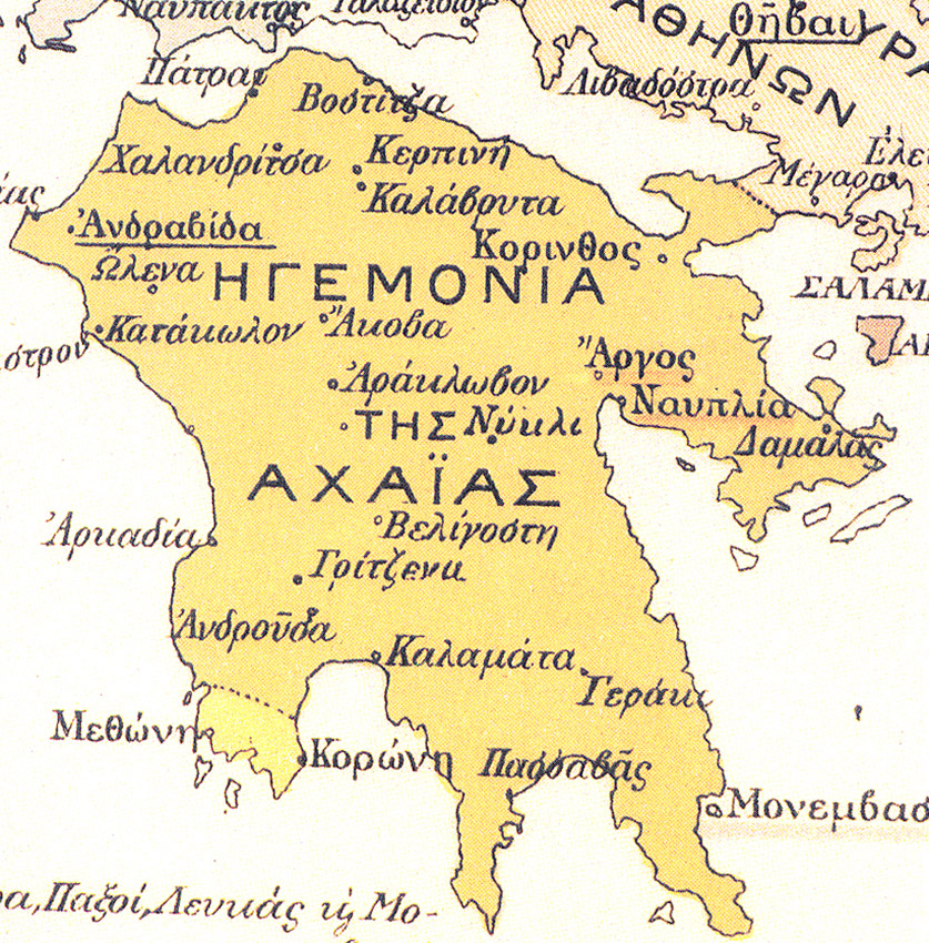 Ένα χρόνο μετά την Άλωση της Πόλης από τους Φράγκους, έρχεται και η σειρά του Μωριά. Έπειτα από κατάληψη της Αχαϊας και της Ηλείας, ο επιστρέψας από την Παλαιστίνη σταυροφόρος και επιφανής Γάλλος τυχοδιώκτης Γοδεφρείδος Βιλλ(ε)αρδουϊνος, πείθει τον ...συνάδελφο του Καμπανίτη, που τα έχει βρεί σκούρα στον Ακροκόρινθο, να κατακτήσουν πρώτα την ανοχύρωτη Πελοπόννησο. Γυρίζει στην Ηλεία και χρησιμοποιώντας τους υποταγμένους «ευγενείς» ως μεσάζοντες, βάζοντας τους να γράψουν στους υπόλοιπους τσιφλικάδες ότι θα τους θεωρήσει συμμάχους, μαζεύει όλη την εγχώρια ολιγαρχία. Εκεί, μια δωδεκαμελής (!) μεικτή επιτροπή (από έξι φράγκους και έξι «Έλληνες») μοιράζει τη χώρα σε δώδεκα μεγάλες βαρωνίες, εξασφαλίζοντας έτσι τα κεκτημένα των πρόθυμων παριστάμενων ντόπιων!