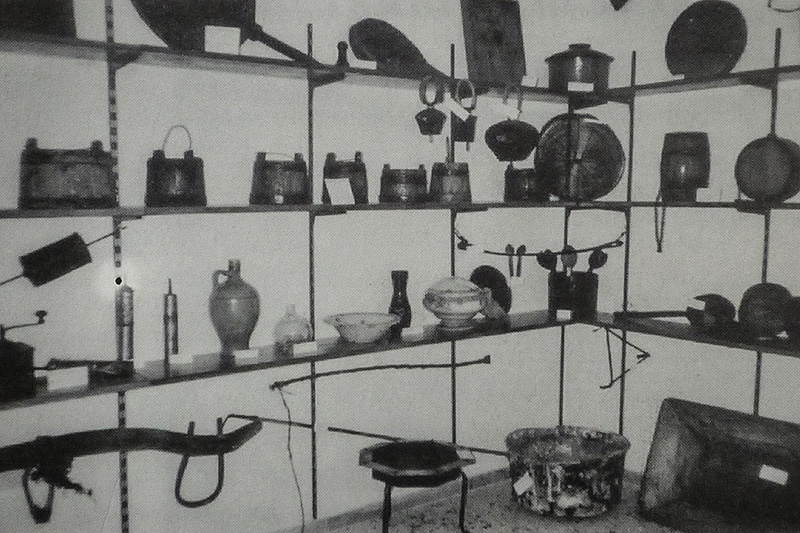 τοποθετήθηκαν σε προσωρινά ράφια, κατάλληλα ομαδοποιημένα, χάρις στις μαθήτριες (!) Βούλα Θ. Φράγκου και Μαρία Ι. Καραπανάγου, υπό την καθοδήγηση του ίδιου του Κοινοτάρχη Γιάννη Καραπανάγου και της συζύγου του Αγγελικής Λεοναρδοπούλου-Καραπανάγου. Τα δύο κορίτσια θυσίασαν τις καλακαιρινές τους διακοπές για να επεξεργασθούν ένα ένα τα εκθέματα. Παίρνοντας στοιχεία από το βιβλίο του αείμνηστου Αγγ. Φλούδα, έγραψαν για το κάθε αντικείμενο την ονομασία του και, σε πολλές περιπτώσεις, την προέλευση του. Με αυτό τον τρόπο, δημιούργησαν έναν ωραίο χώρο για τα (πολιτισμικά) πολύτιμα αυτά αντικείμενα, που μέχρι τότε ήταν πρακτικώς άστεγα.